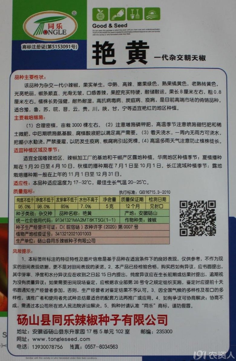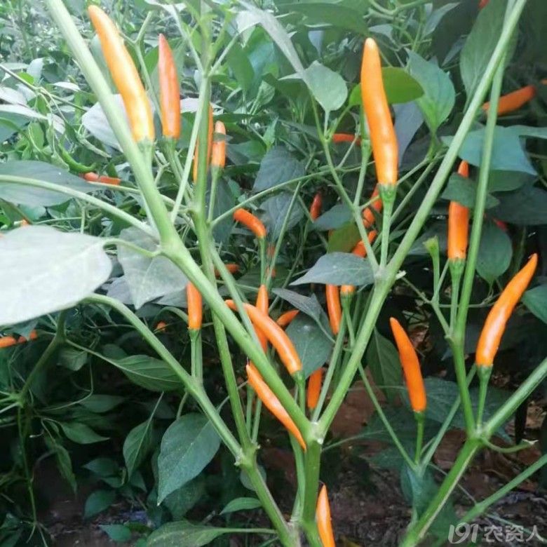 艳黄朝天椒是杂交一代单生朝天椒品种,中熟、高辣、嫩果绿色,熟果橘黄色,老熟转黄色,光亮艳丽,椒条顺直,光滑无皱,口感香辣,果腔充实较硬,耐储耐运。果长8厘米左右,果粗0.8厘米左右,植株长势强健,耐热耐湿,高抗病毒病、炭疽病、疫病,是目前高端市场的俏销品种,适合豫、鲁、苏、皖、晋、云、贵、川、陕、甘、宁等适宜种朝天椒的地区种植。百度“艳黄朝天椒”了解该品种更多信息。