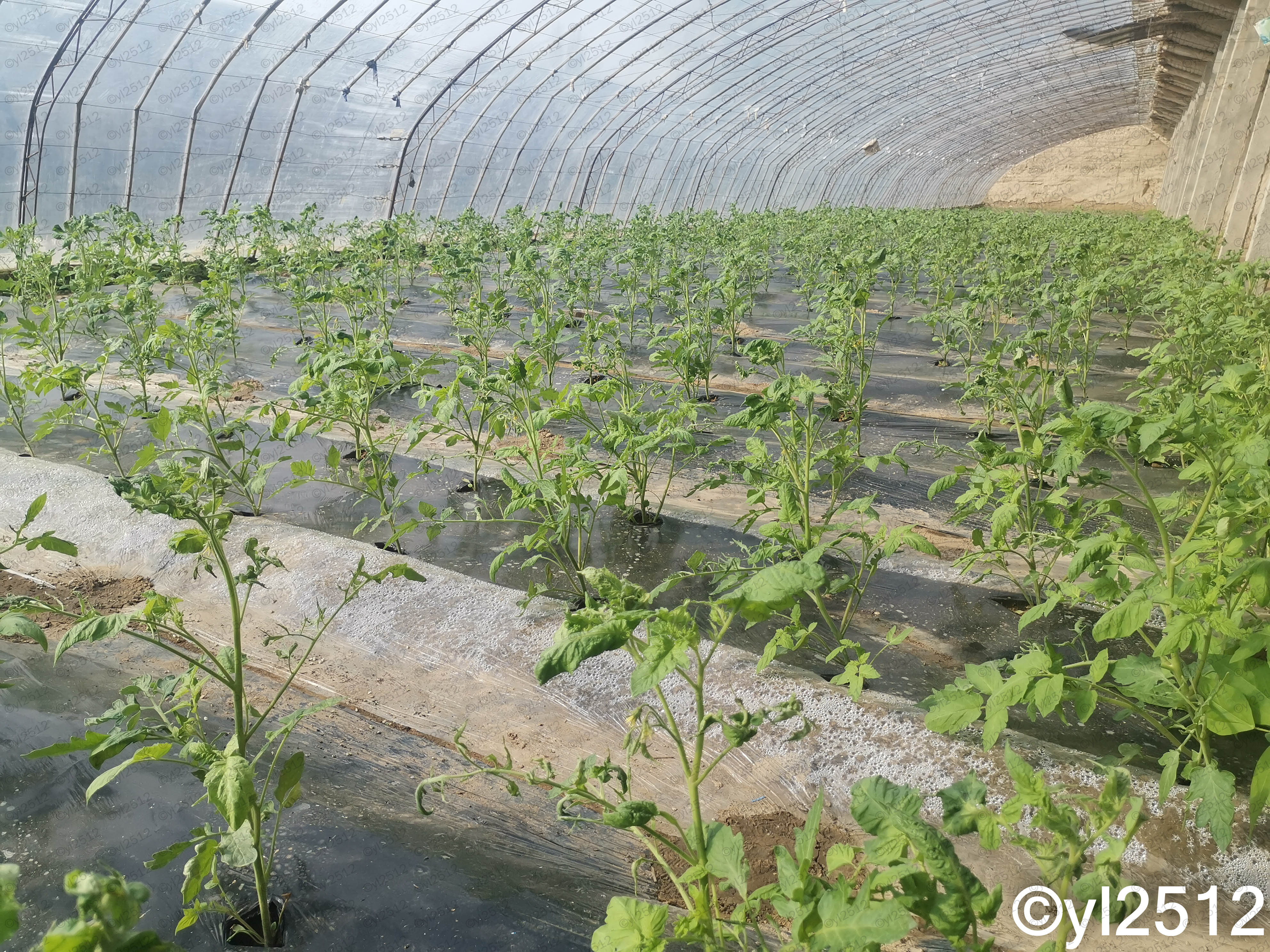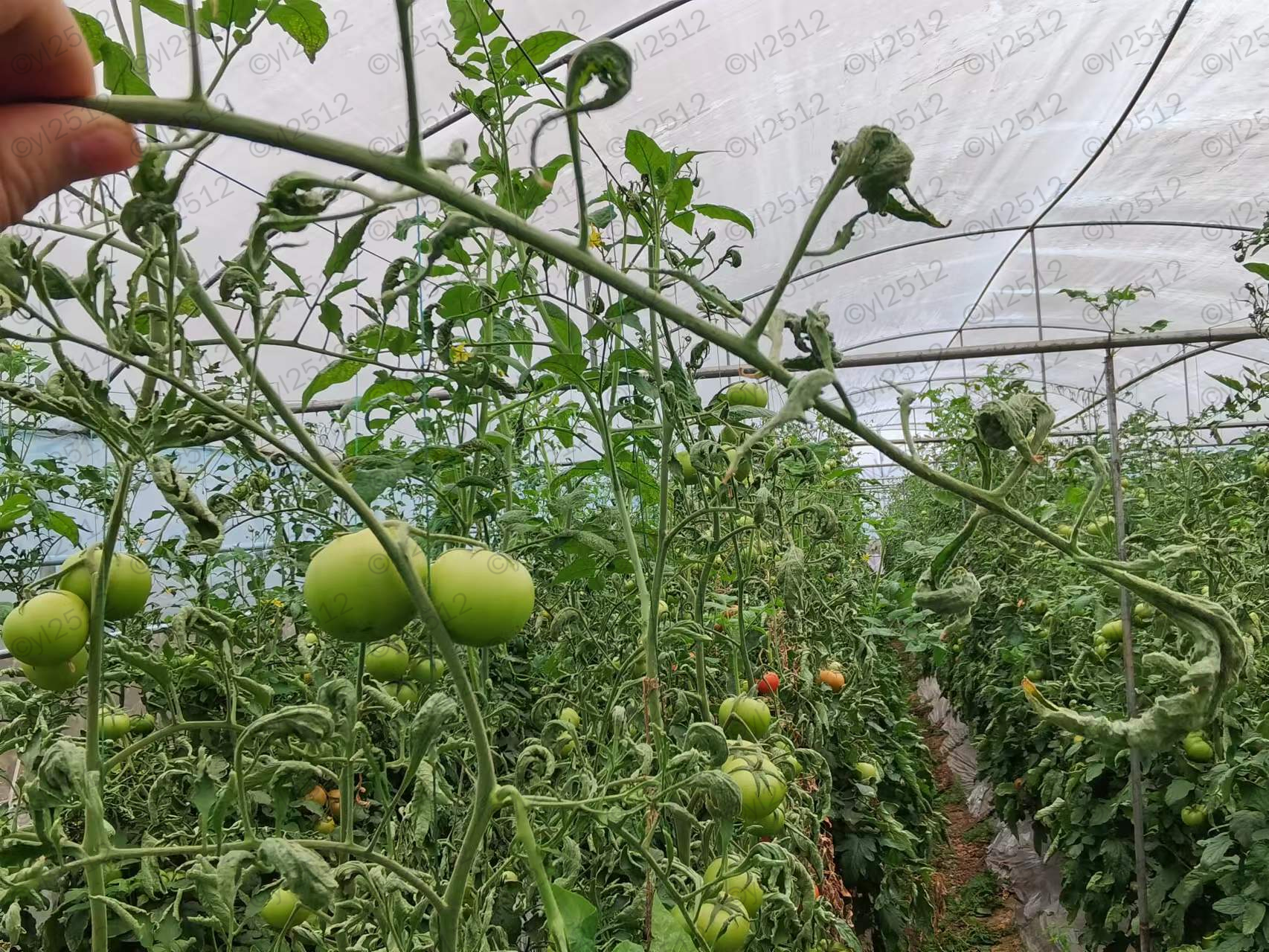 图2.番茄种苗带病,导致整棚大面积发生病毒病