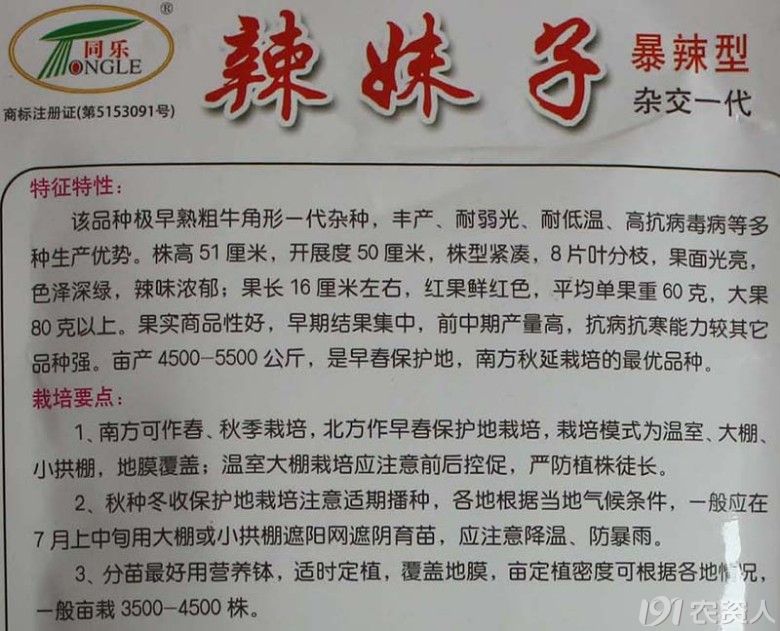 辣妹子粗牛角椒,耐弱光、耐低温、抗病性强。株高55厘米,株型紧凑,8片叶分枝,早熟,嫩果深绿,熟果鲜红,果面亮丽,辣味浓郁,果长16厘米左右,单果重60克左右,商品性好,亩产万斤左右,是早春保护地、南方秋延栽培的优良品种。百度“辣妹子牛角椒”了解详情。