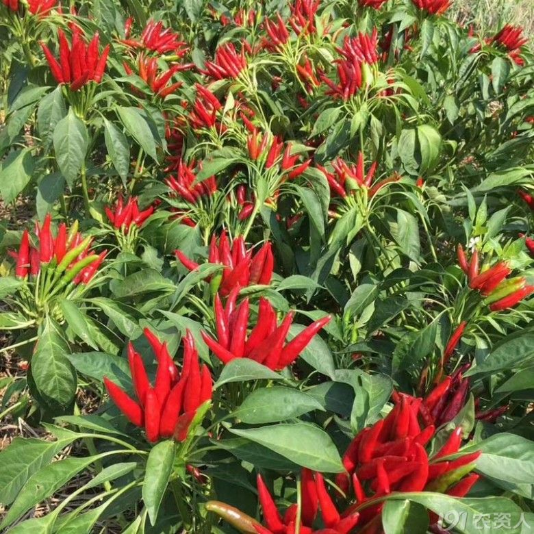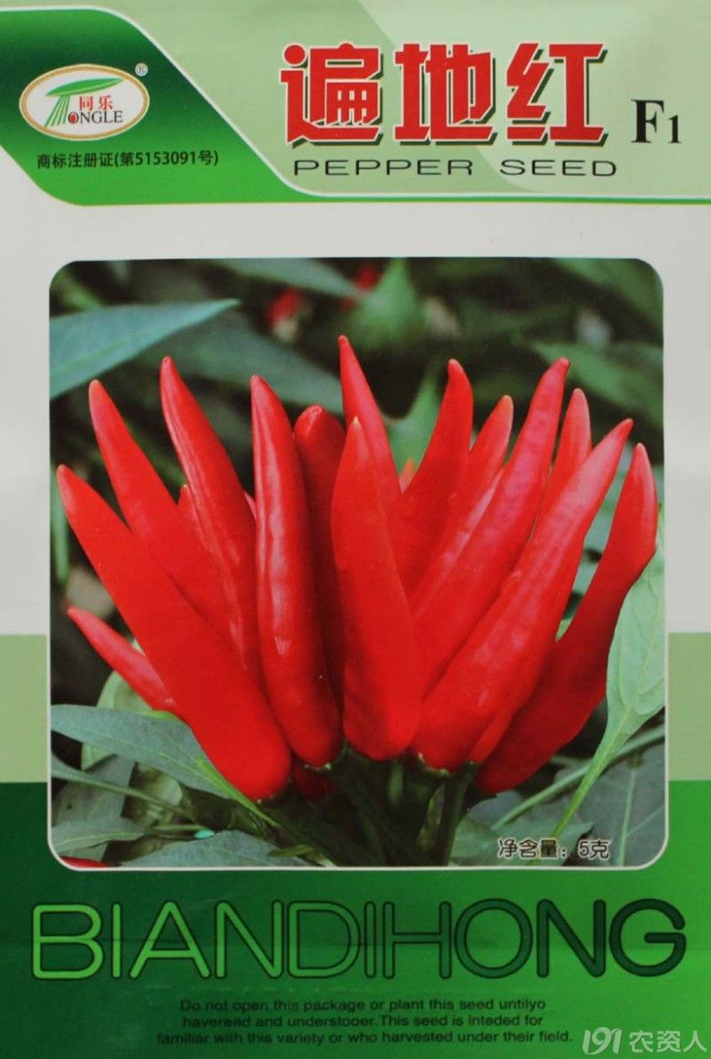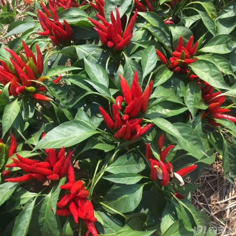 遍地红朝天椒,簇生,中早熟,株型紧凑,分枝力强,株高60厘米左右,朝天簇生,坐果稠密,果长6厘米左右,色泽红而亮丽,辣味浓香,商品性好。抗病强,抗倒伏,耐重茬,耐旱涝,一般亩产干椒800斤左右,高产田可达千斤。