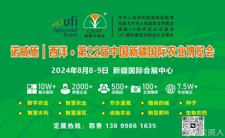 [color=rgba(0, 0, 0, 0.9)]经中华人民共和国商务部批准、国家5A级农业认证、UFI国际展览业协会认证的展会—诺威施|西洋·第22届中国新疆国际农业博览会将于2024年8月8-9日在新疆国际会展中心举办。为确保参展商高效对接终端客户,有效拓宽市场渠道,大会秘书处已全面启动观众邀约工作,深入全疆各地,展开一对一精准邀约行动。