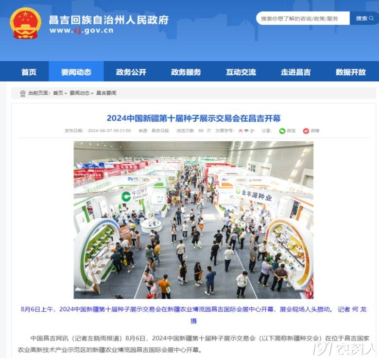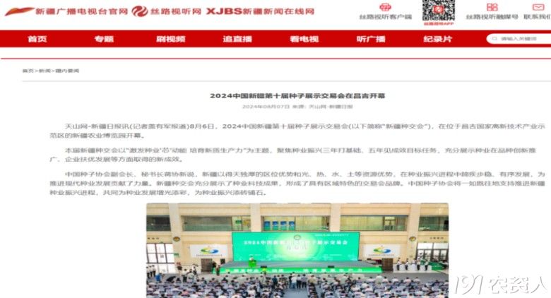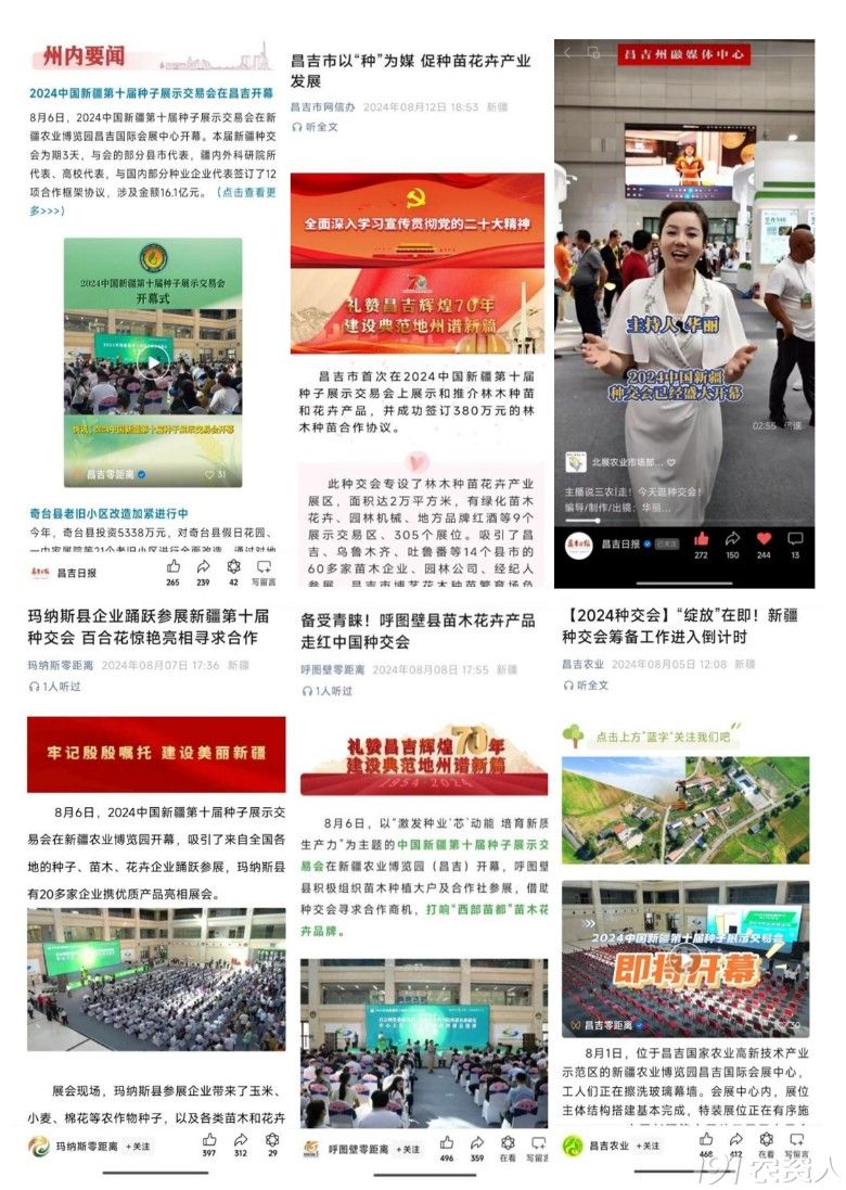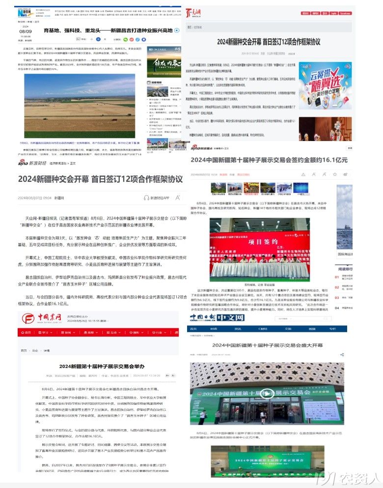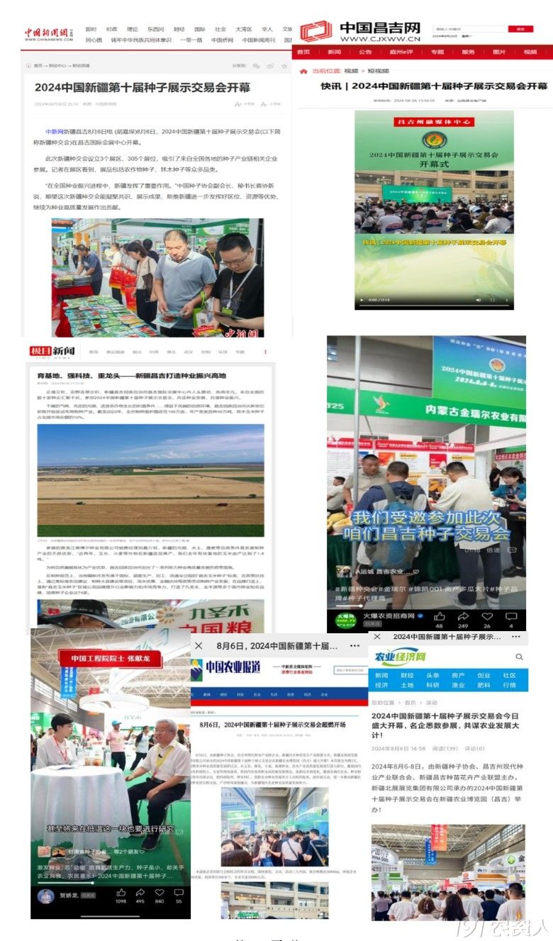 六、媒体宣传 2024中国新疆第十届种子展示交易会获得当地政府权威支持,被新华网、天山网、新浪财经、新浪网、中国农网、极目新闻、中国日报网、中国新闻网、中国农业报道、中华农业网、中国昌吉网、农业日报、农业经济网、昌吉日报、新疆新闻广播、昌吉新闻联播、昌吉零距离、昌吉高新区、昌吉日报社等多家媒体报道转载。
