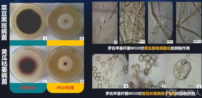 01抑菌防病M520产生的丰富挥发性有机物(如糠醛、苯甲醛等),能