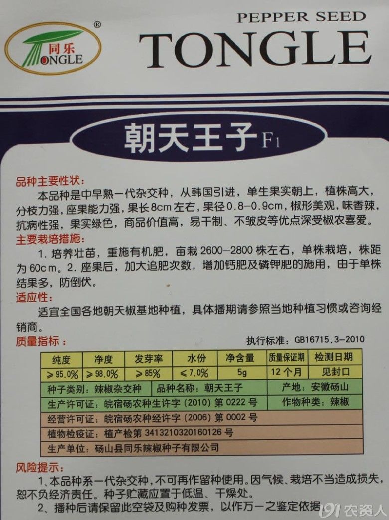 朝天王子朝天椒适应性强,全国大部分地区均可种植,既可露地种植,也可大棚及小工棚秋延迟栽培,经近年在全国多点试种,表现良好,深受百姓欢迎。如想了解该品种更多信息,请百度“单生朝天椒朝天王子”。