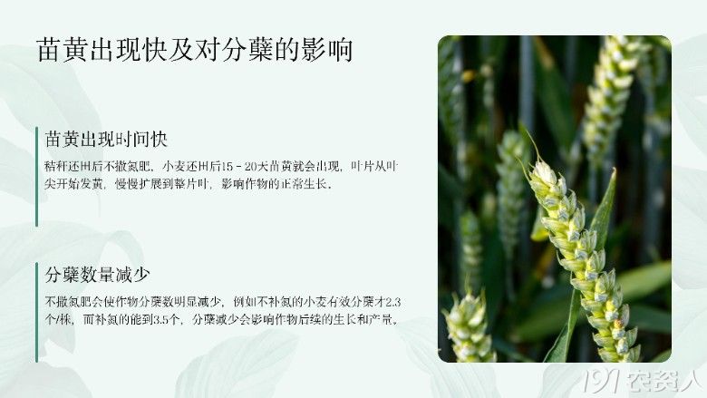 再说说不撒氮肥的危害,不只是苗黄,土壤还会越种越穷。第一,苗黄来得快,小麦还田后 15-20 天就会出现,叶片从叶尖开始黄,慢慢扩到整片叶,分蘖数能少 30%,比如不补氮的小麦,有效分蘖才 2.3 个 / 株,补氮的能到 3.5 个;第二,根系长不好,缺氮会让根系变细变短,小麦根系扎深从 30cm 降到 22cm,吸不上深层水和肥,抗冻抗旱能力也差;第三,土壤有机质白瞎,秸秆分解不彻底,会在土里形成 “半腐熟秸秆块”,不仅不能增加有效有机质,还会影响土壤透气性,土壤容重从 1.2g/cm³ 升到 1.4g/cm³,板结越来越重,真成了 “越种越穷”。