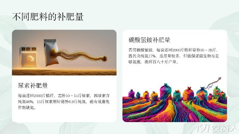 那该补多少、补啥肥?记住两个数:一是补肥量,每亩还田 2000 斤秸秆,要补 10-15 斤尿素(含纯氮 46%,15 斤尿素刚好补 6.9 斤纯氮),要是用碳酸氢铵(含纯氮 17%),就得补 30-35 斤,别嫌多,这点肥能换回来百八十斤产量;二是补肥时间,必须在秸秆还田后 3 天内撒,最晚别超过 5 天,撒完马上翻耕,让氮肥和秸秆混在一起,微生物才能及时拿到氮,不用跟作物抢。咱山东种玉米的农户试过,还田当天撒尿素,秸秆分解率比 5 天后撒的高 40%,土壤有效氮含量多 25%,苗就没黄过。