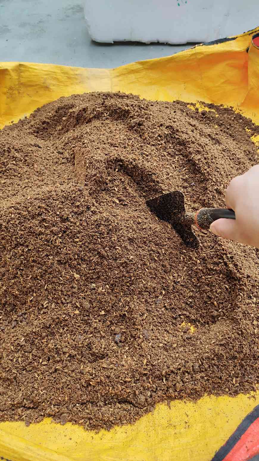 9斤菜籽饼+稻壳粉末大概菜籽饼的四分之一+少许稻壳+糖蜜大概200ml兑成浓糖蜜水+活土君菌种。
