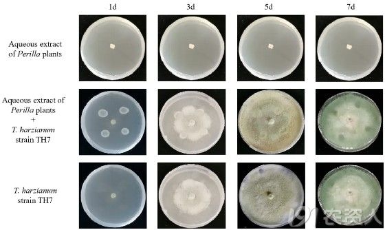 紫苏植物的水提物不影响哈茨木霉TH7的生长 | 图源:云南农业大学何澍然团队
