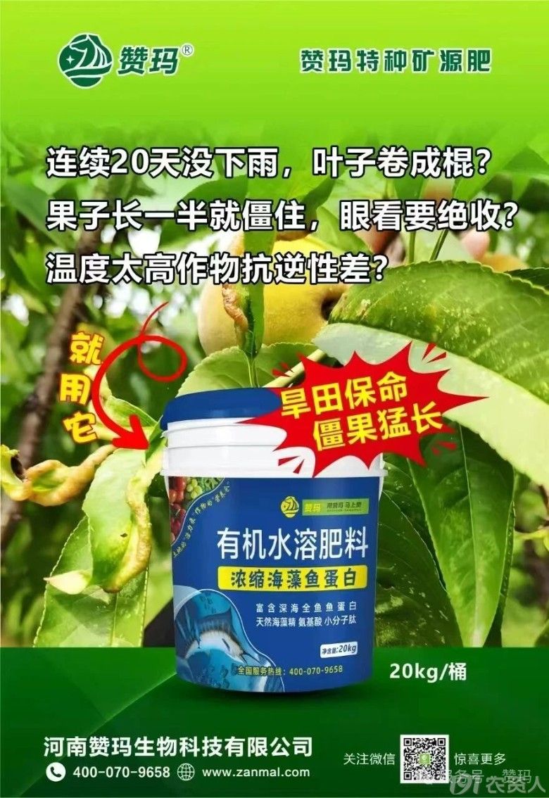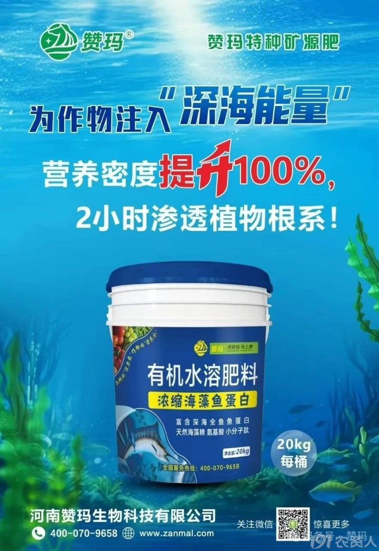 种地的朋友都知道,想要作物高产优质,光靠“表面功夫”可不行!根系弱、叶片黄、开花少、坐果差、品质上不去……这些问题追根溯源,往往是作物“底子”没打好,营养没跟上! 您是否也在寻找一款真正能深入滋养、全面呵护作物生长的好肥料?今天,就为您隆重介绍我们的明星产品——赞玛浓缩海藻鱼蛋白!它专为解决这些“卡脖子”难题而生,用深海精华,养出作物强健体魄!