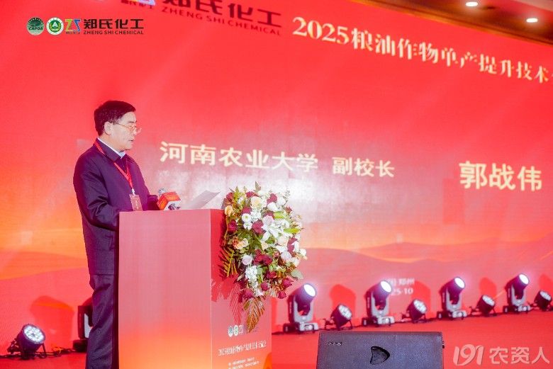 10月18日,2025粮油作物单产提升技术交流会在河南省郑州市成功召开。本次会议由中国农药发展与应用协会、河南农业大学主办,河南农业大学理学院、郑州郑氏化工产品有限公司承办。 中国农药发展与应用协会会长周普国,河南省委农办副主任、河南省农业农村厅党组成员、副厅长、一级巡视员王俊忠,河南农业大学副校长郭战伟,全国农业技术推广服务中心首席专家刘万才,全国农业技术推广服务中心原首席专家高祥照,河南省农业农村厅农药管理处处长何亮,副处长王浩,河南农业大学理学院党委书记王照兰,中国农科院油料所研究员刘胜毅,中国农业大学农学院教授、博士生导师谭伟明,农业农村部小麦专家指导组副组长、顾问、河南省小麦专家组组长、河南农业大学郭天财教授,国家大豆产业技术体系岗位科学家、中国农科院植保所研究员黄兆峰,国家花生产业技术体系岗位科学家、河南农业大学植保学院院长周琳教授,国家玉米产业技术体系岗位科学家、教育部作物生长发育调控重点实验室主任、河南农业大学刘天学教授,中国水稻研究所副研究员万品俊博士,中国农药发展与应用协会秘书长花荣军,河南省农药管理协会秘书长王全德,郑州郑氏化工产品有限公司董事长郑先福,总经理郑昊,河南瀚斯作物保护有限公司董事长申艳林,六夫丁作物保护有限公司董事长陈诺,河南远见农业科技有限公司董事长张云峰,河南豫珠恒力生物科技有限公司董事长廖力波,河南豫之星作物保护有限公司董事长李国建等领导、专家与来自全国各地的1000余位农化同仁参加了此次会议。 河南农业大学副校长郭战伟致辞