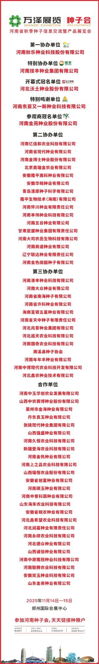 [农资会展]重磅|2025河南秋季种子会冠名单位、协办单位、合作单位名单(部分)发布 [复制链接]