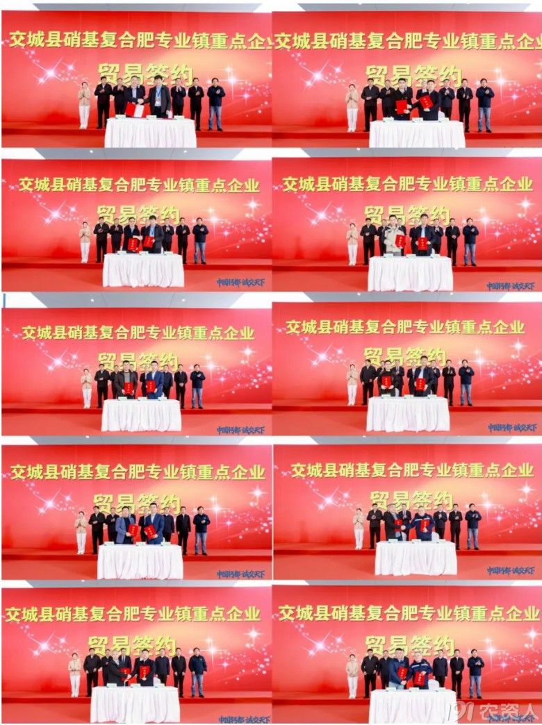 蓝图已经绘就,合作促成共赢。会上举行了交城县重点企业贸易签约仪式,交城三喜化工有限公司、山西华鑫肥业股份有限公司、山西金兰化工股份有限公司、交城县德谦肥业有限公司、山西磊鑫化工股份有限公司5家硝基肥骨干企业分别与合作伙伴进行了签约仪式,为产业共赢未来迈出了坚实的一步。签约现场,企业代表们满怀信心,共同期待通过合作实现资源共享、优势互补,共同开拓硝基肥市场新局面。